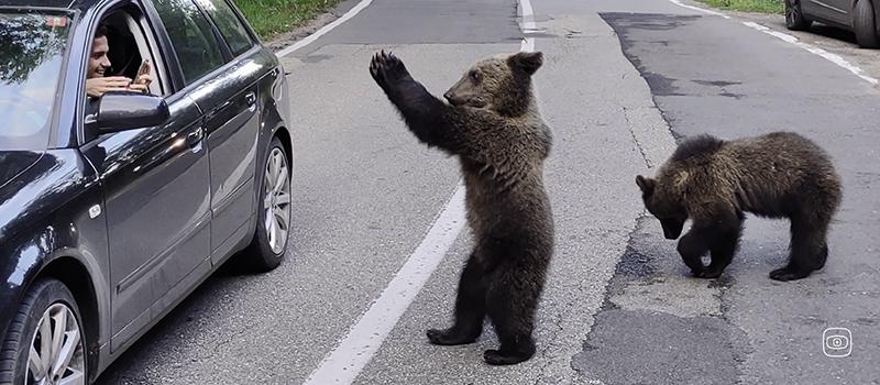 🐻 In Romania, local and increasingly foreign tourists feed wild bears on the street, and force them to pose for selfies. Both activities are illegal.
